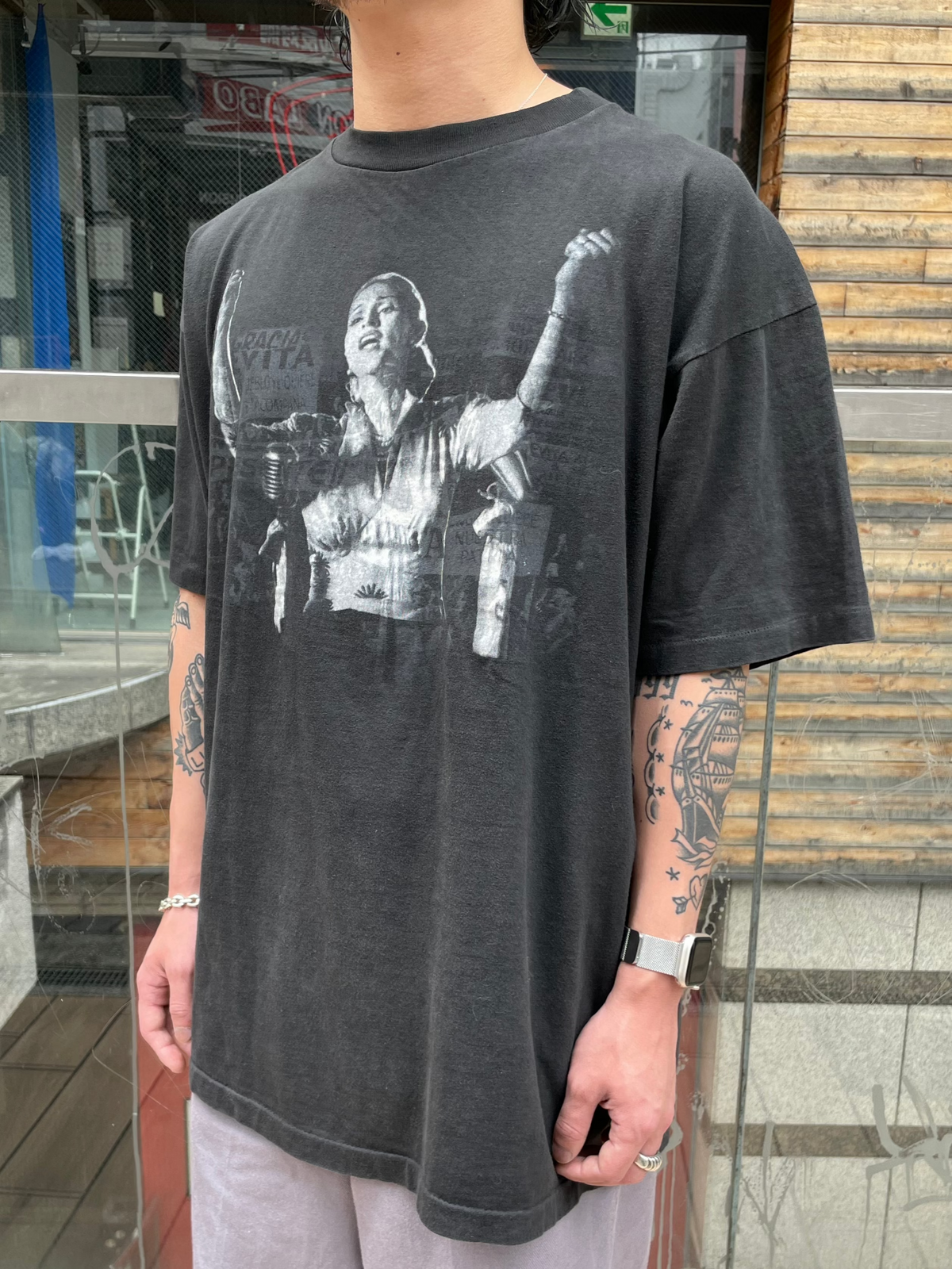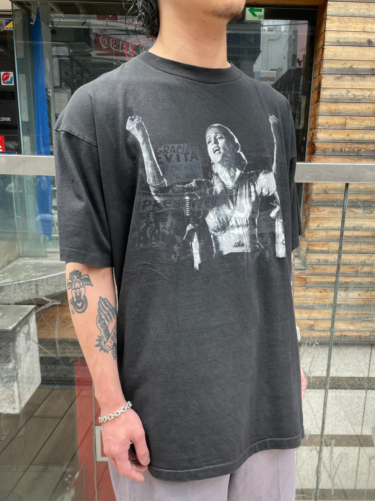 1996年公開の名作ミュージカル映画『EVITA』の公開当時に制作された、オフィシャルプロモーションTシャツ。