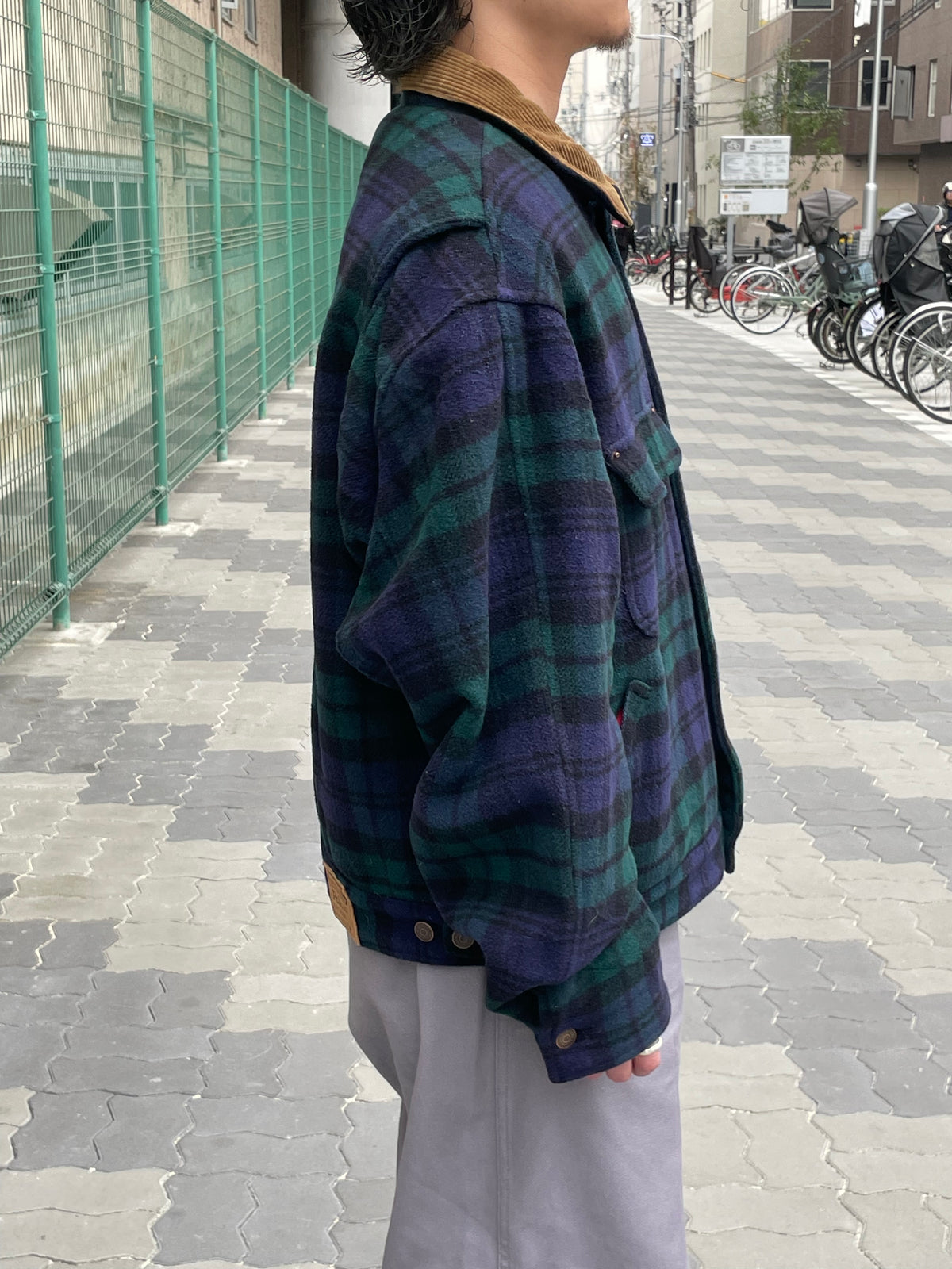 90年代の空気感をそのまま纏った、Polo by Ralph Lauren のウールチェックジャケット。クラシカルなブラックウォッチ柄に、コーデュロイ素材の襟がアクセント。温かみのあるウール生地とレッドの裏地が印象的で、ヴィンテージ好きにはたまらない一着です。USA製ならではのしっかりとした作りで、アウトドアやトラッドな雰囲気も楽しめるラルフらしい逸品。