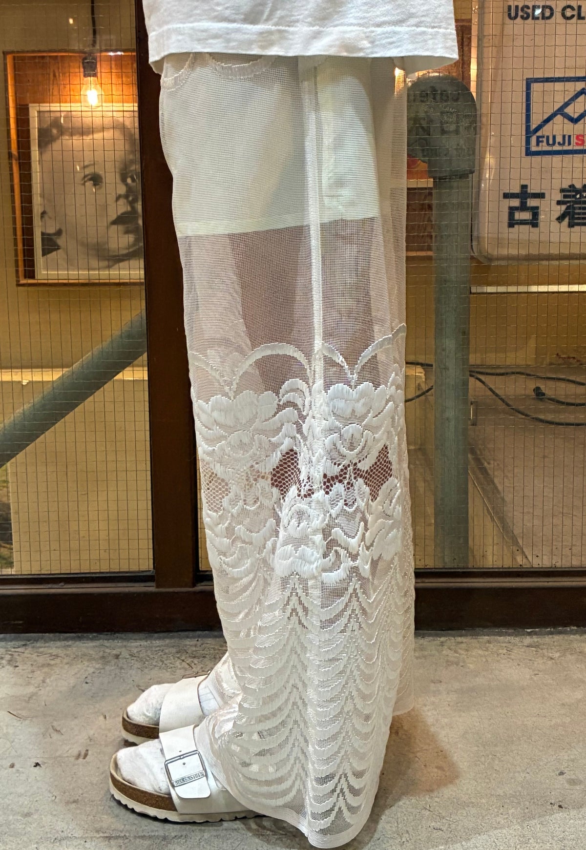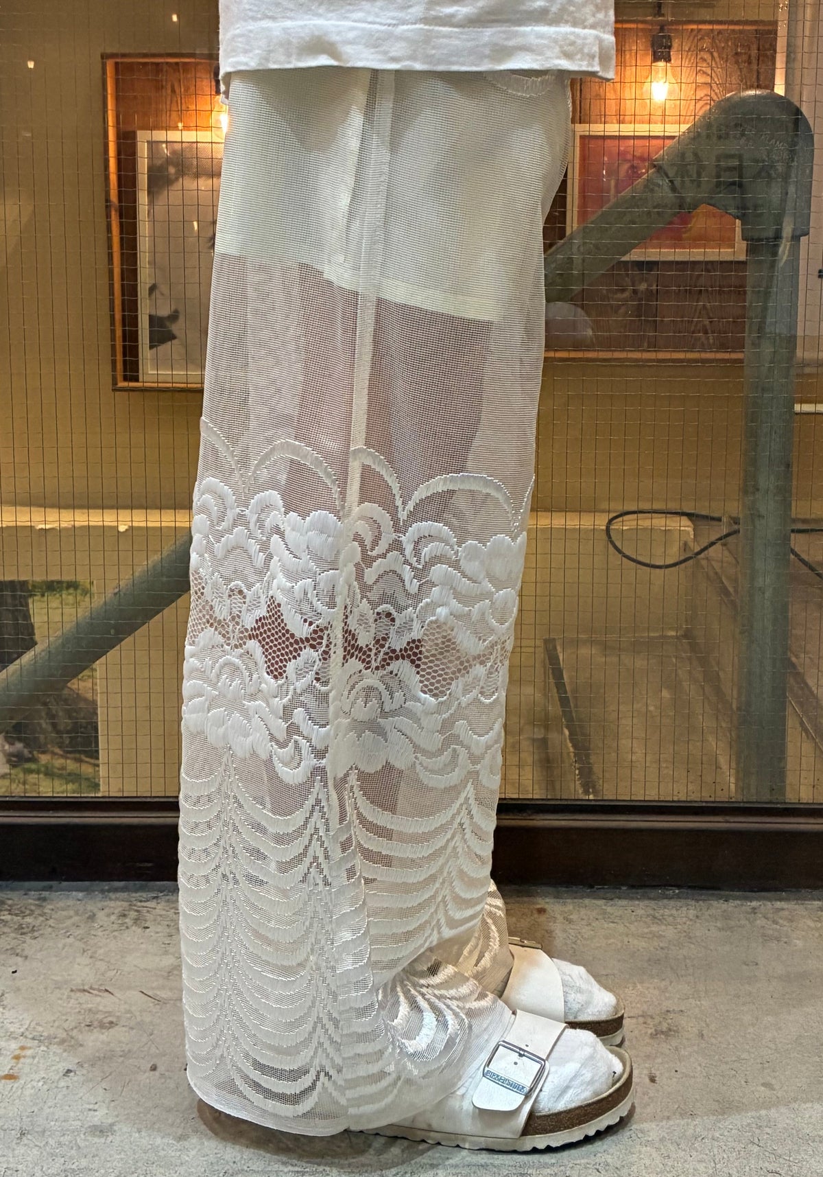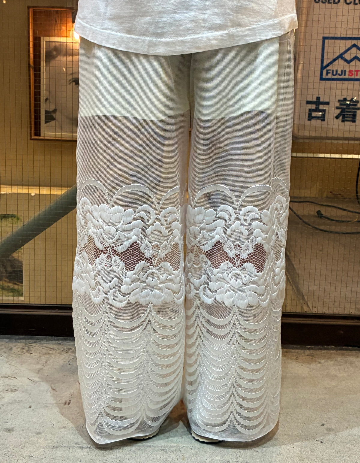 vintageのレース生地を使ったリメイクのロングパンツです。