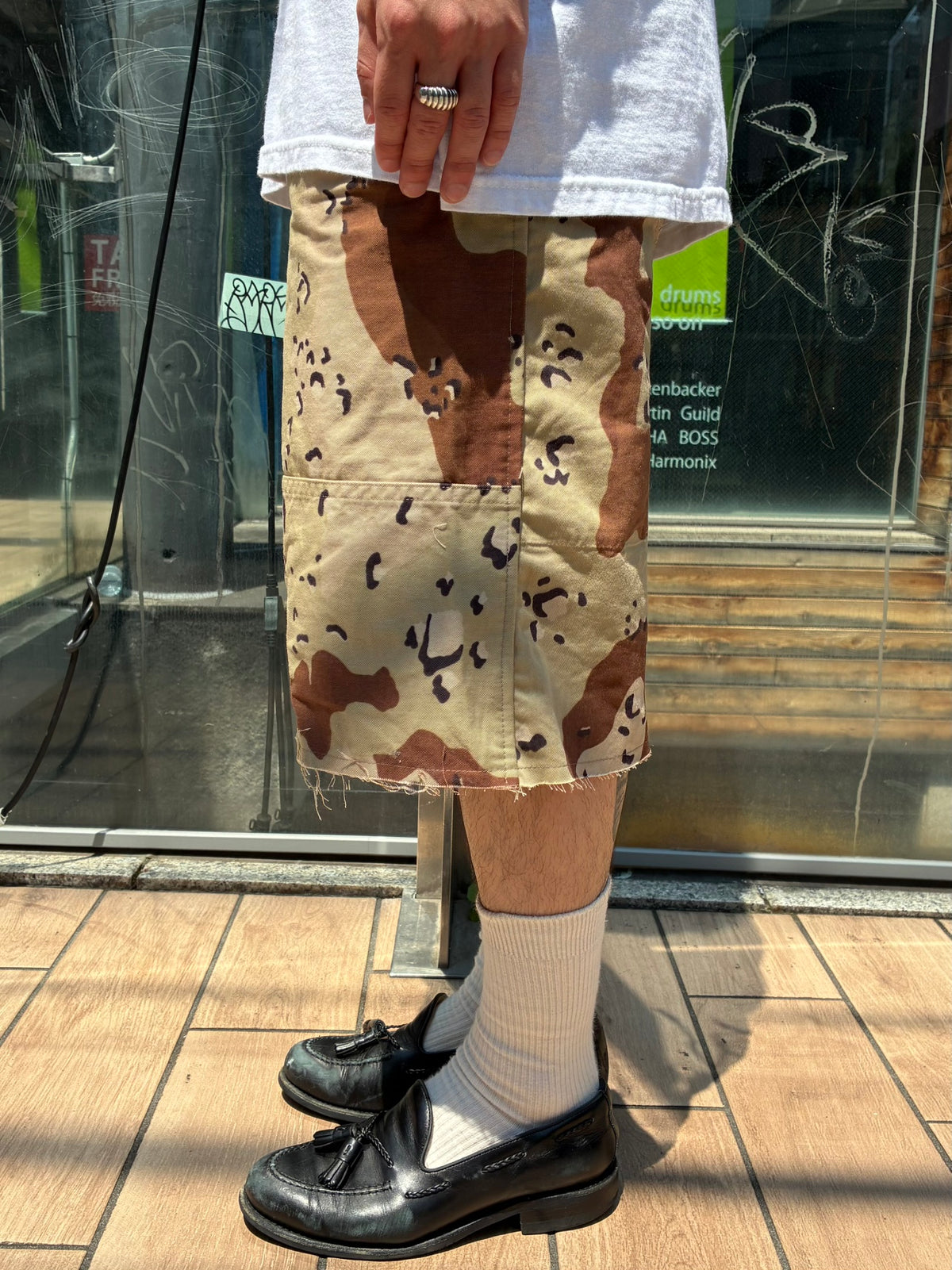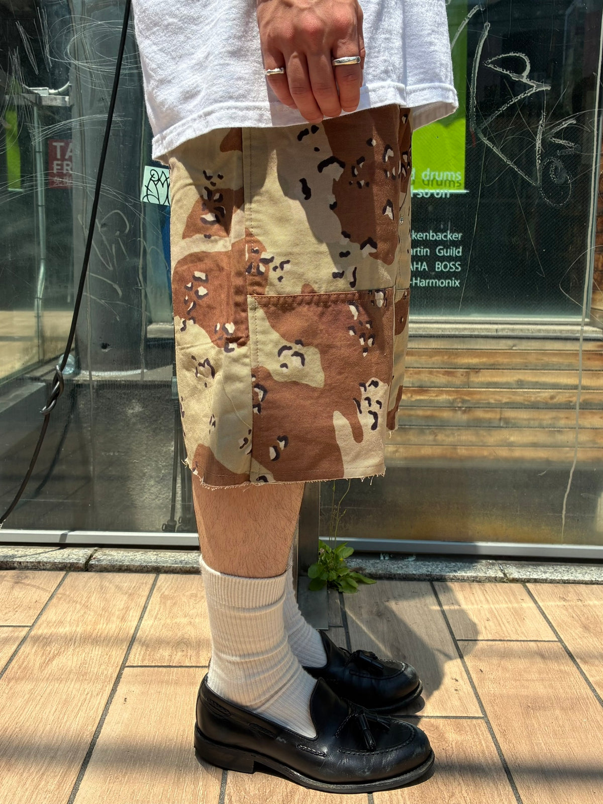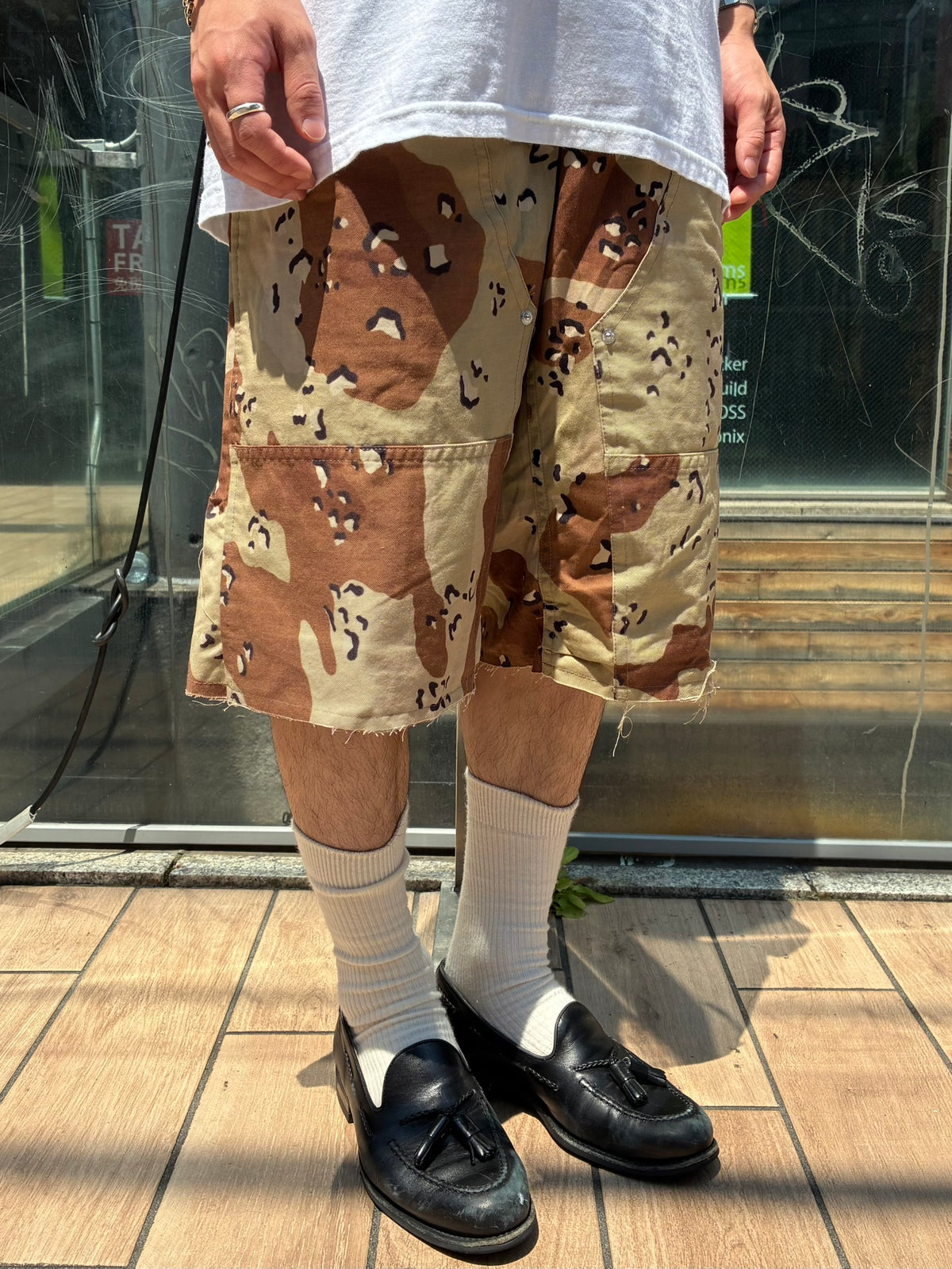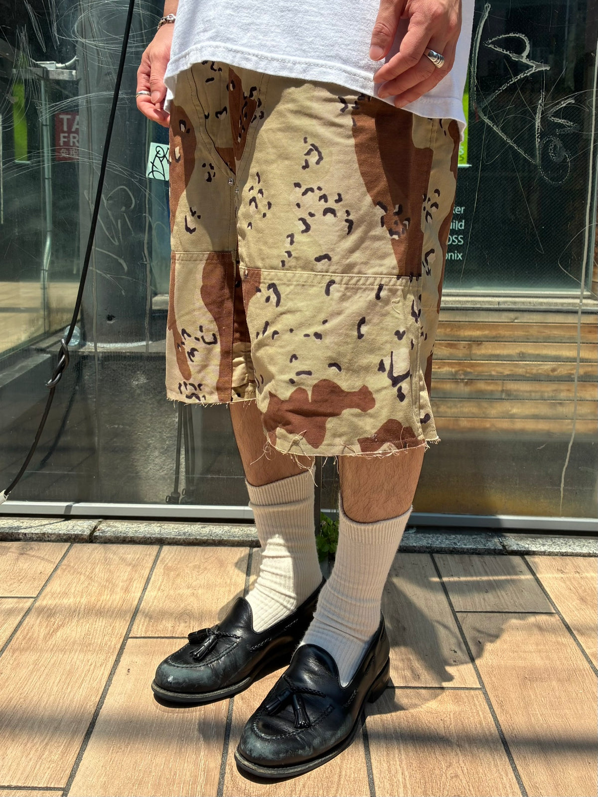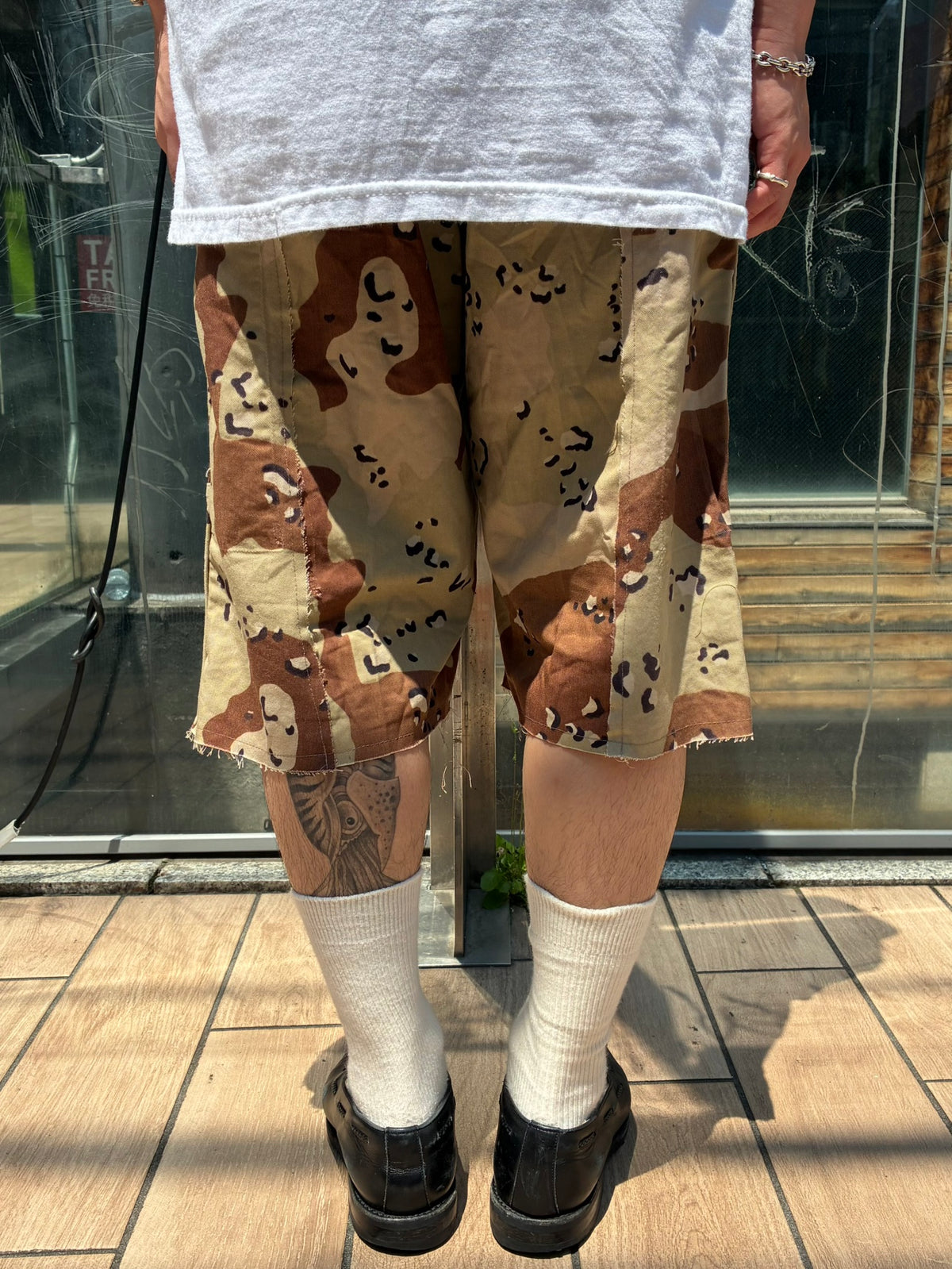 vintageのミリタリー生地を使ったリメイクのショートパンツです。