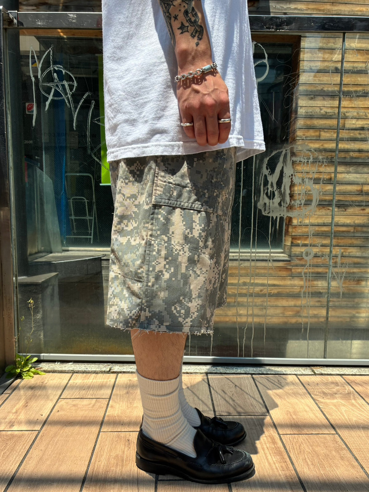 vintageのミリタリー生地を使ったリメイクのショートパンツです。