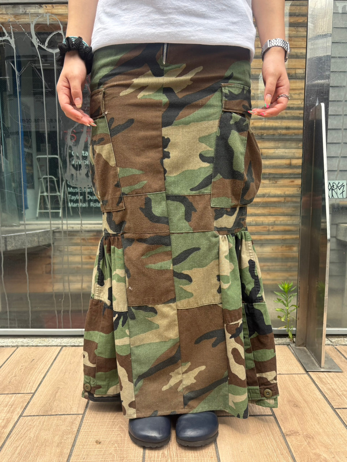 vintageのミリタリー生地を使ったリメイクのマーメイドスカートです。