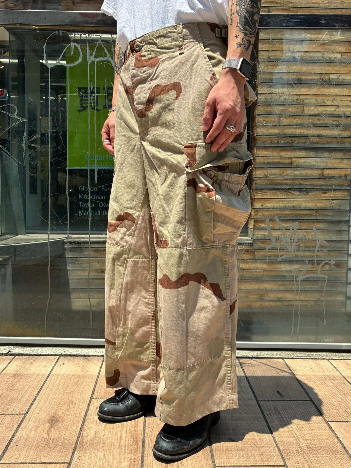 vintageのミリタリー生地を使ったリメイクのワイドパンツです。