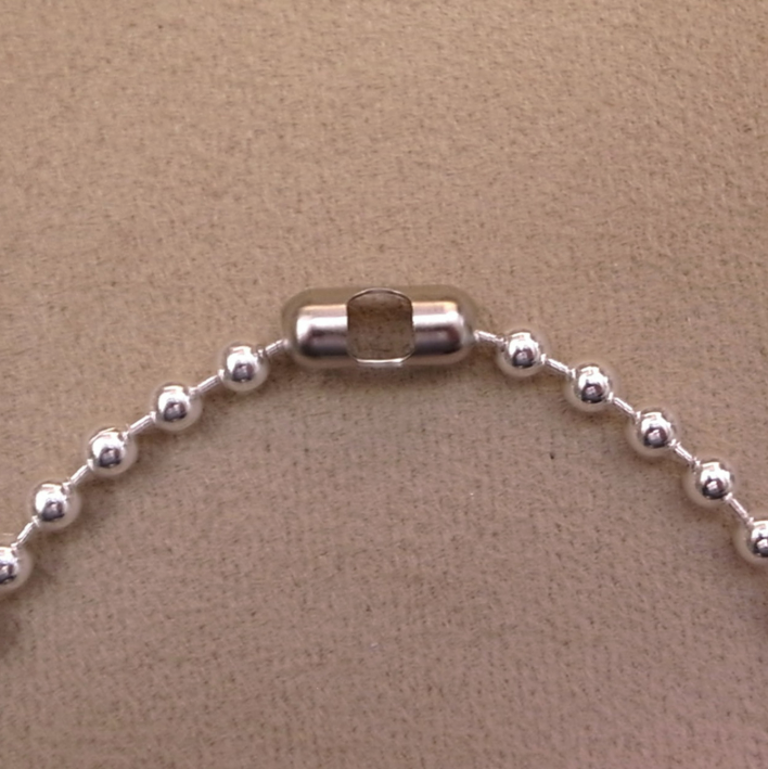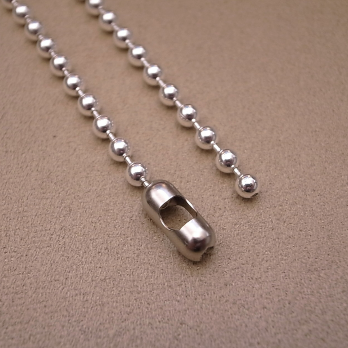 真鍮ボールチェーンにシルバーメッキをして、アメリカ製のコネクターを付けました。