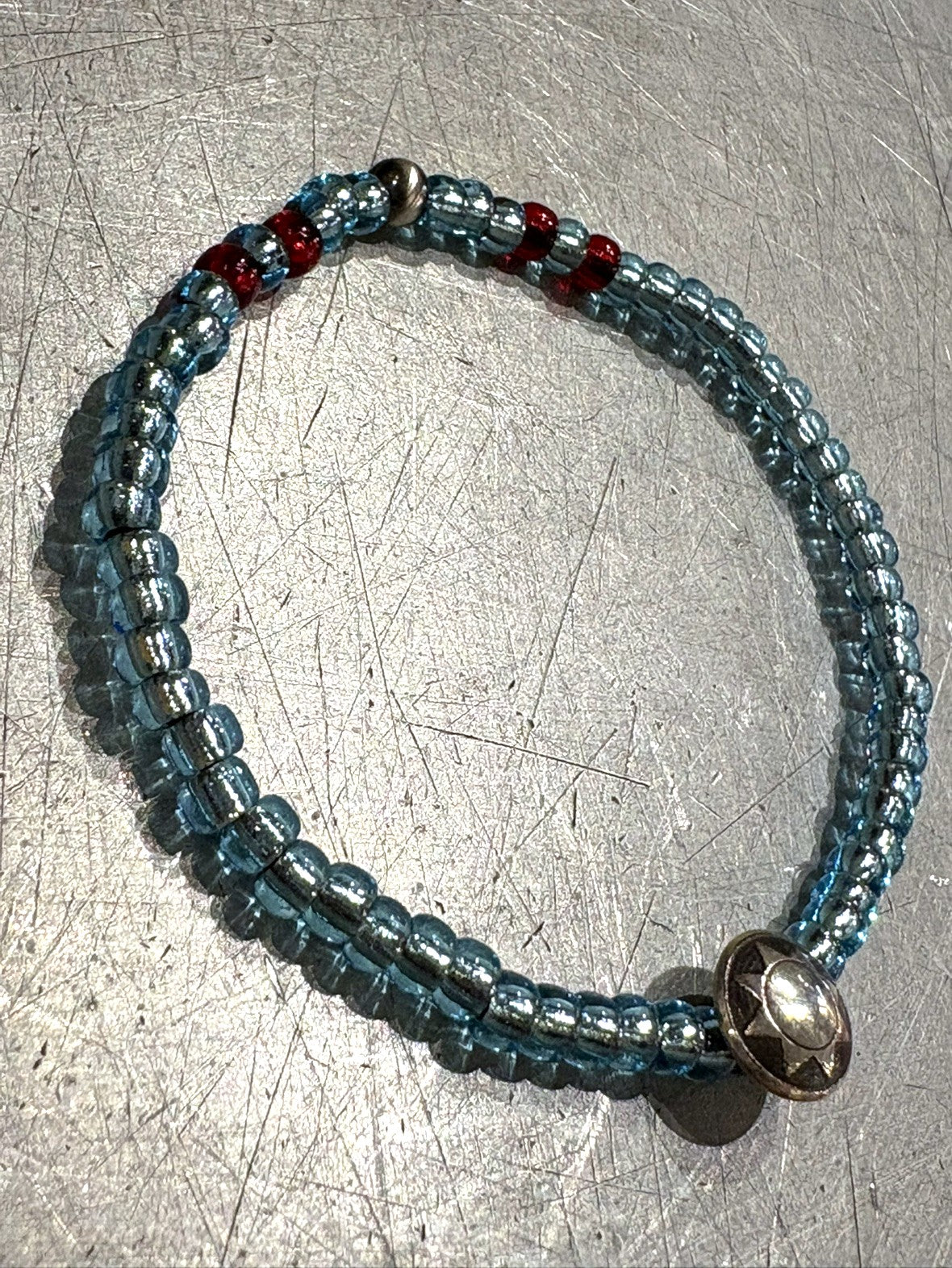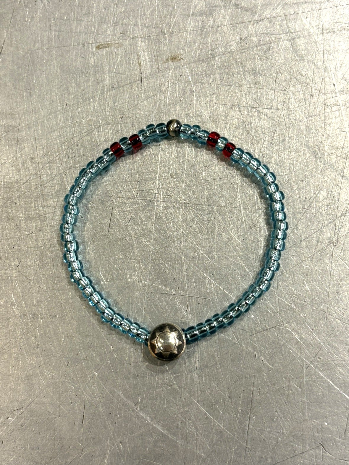 シルバー925 コンチョ&ビーズ ブレスレット- アクアブルー