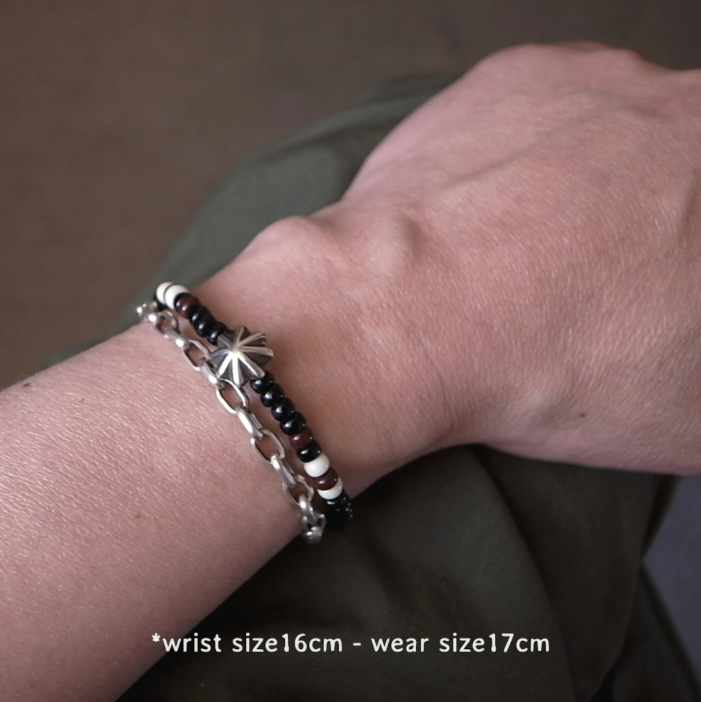 SILVER925 CONCHO & BEADS BRACELET- BLACK/D.BROWN