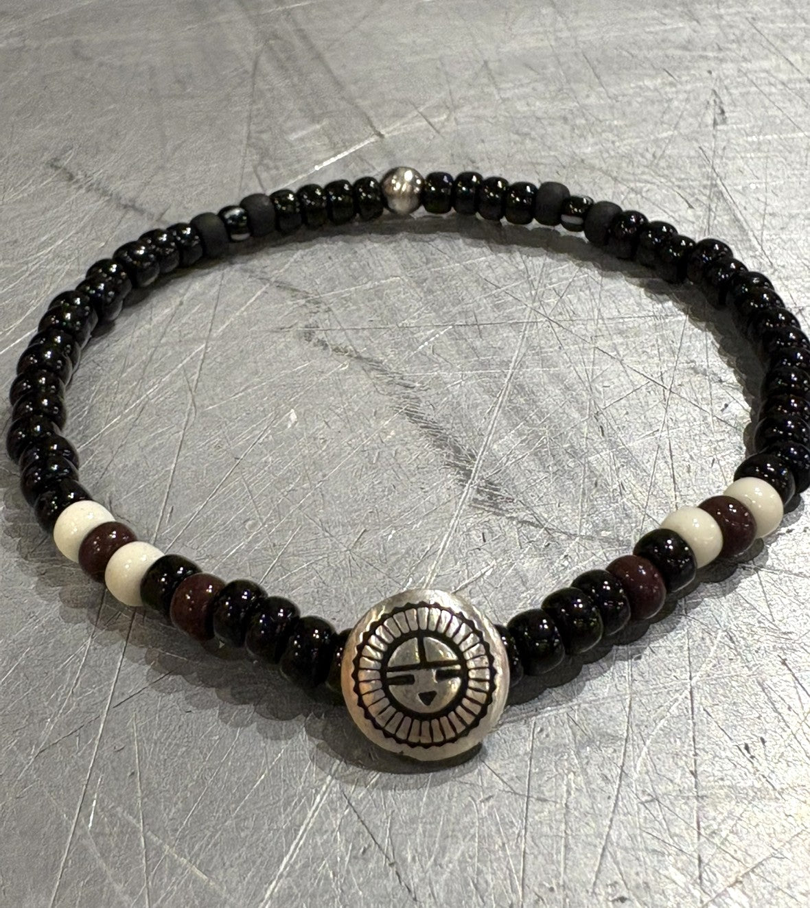 SILVER925 CONCHO & BEADS BRACELET- BLACK・D.BROWN / ROSETTAPRAYER➀