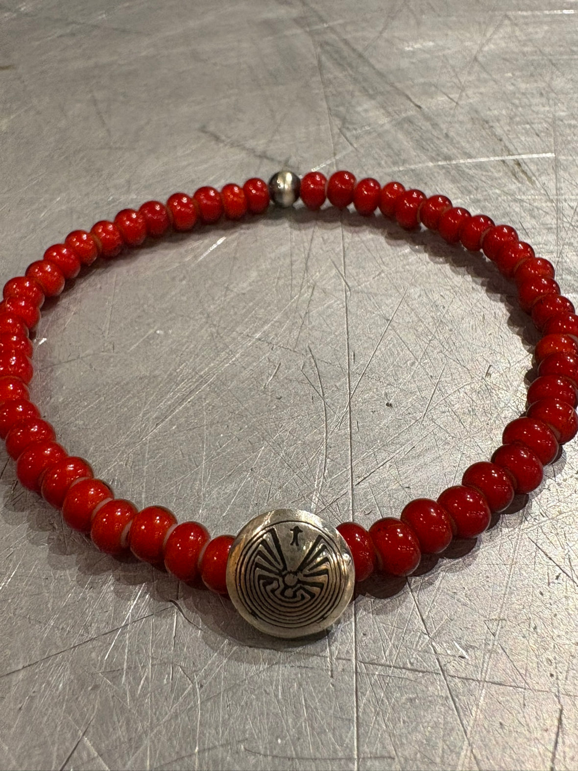 SILVER925 CONCHO&BEADS BRACELET- RED