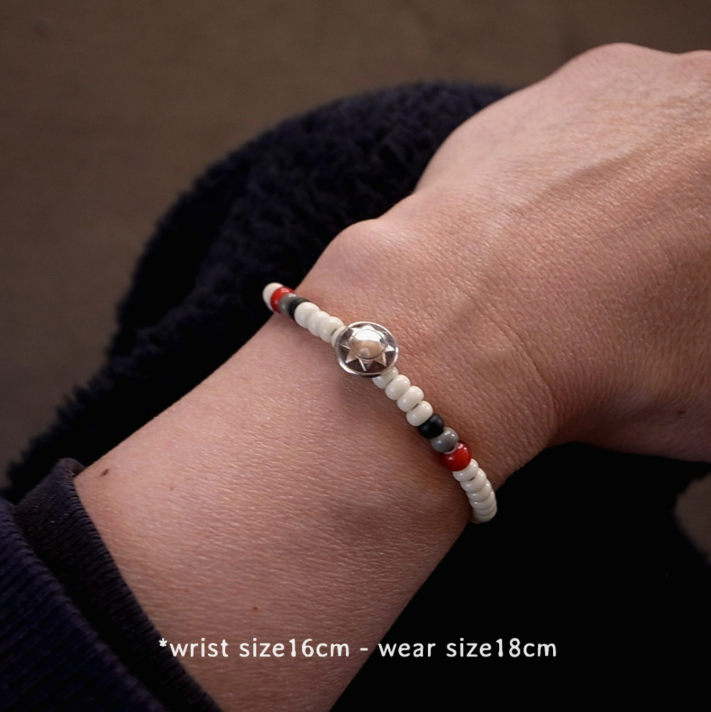 SILVER925 CONCHO & BEADS BRACELET- WHITE/RED/BLACK