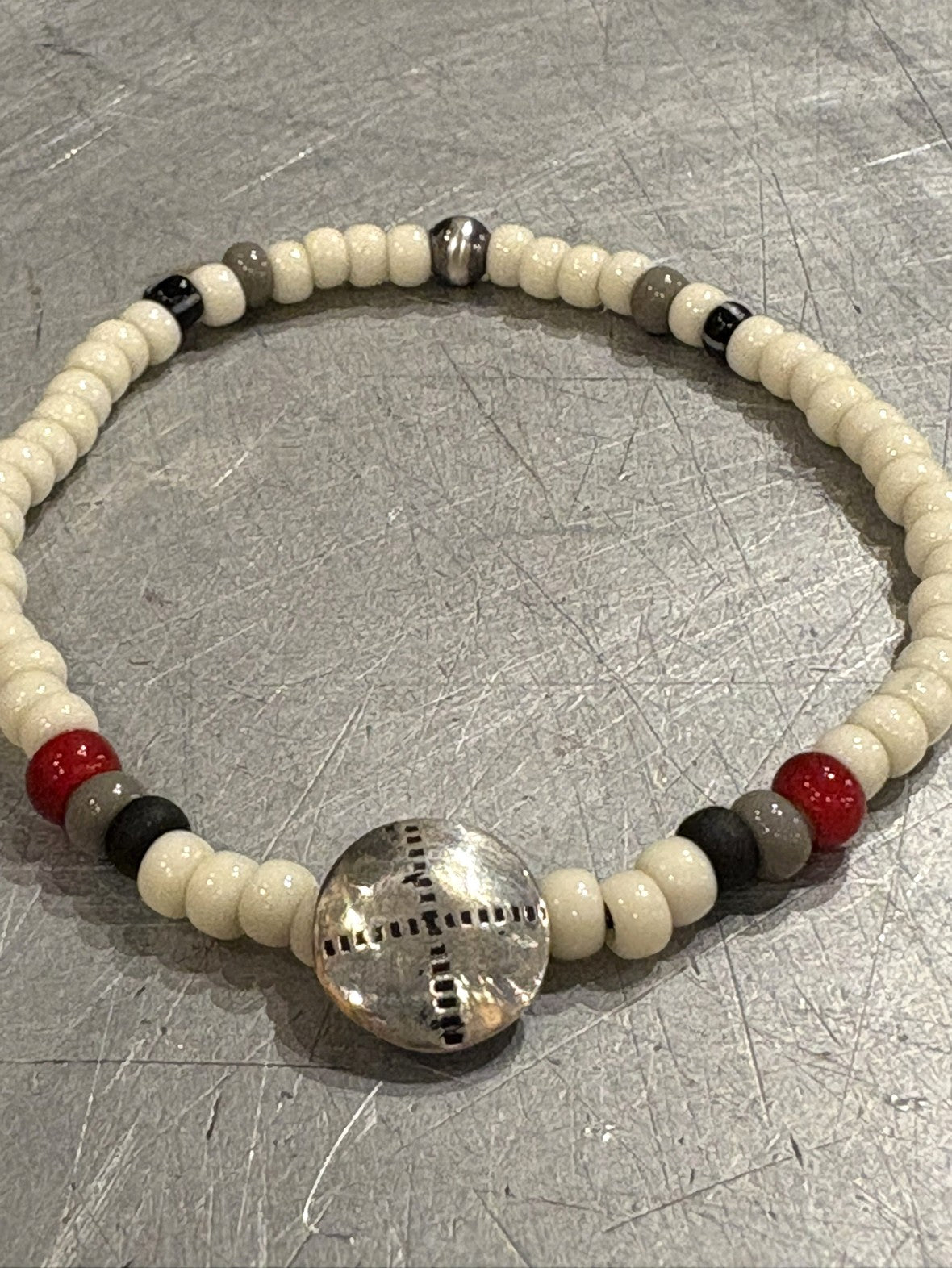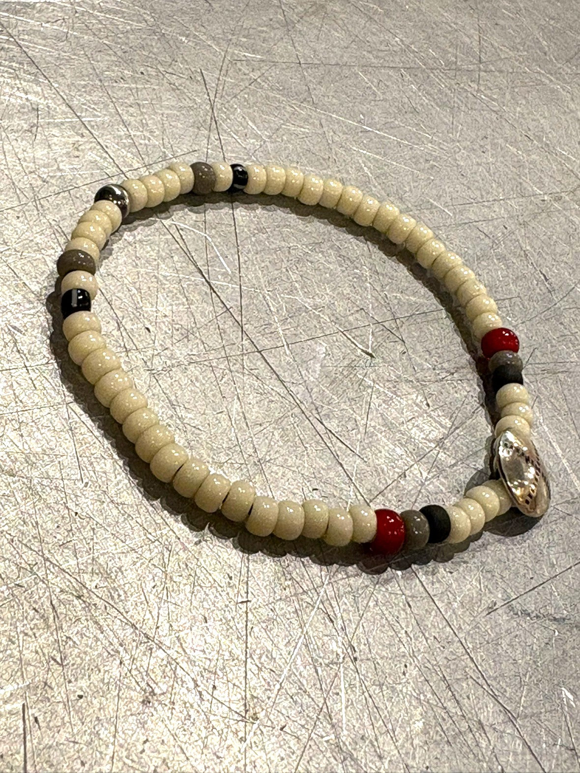 シルバー925 コンチョ&ビーズ ブレスレット- ホワイト/レッド/ブラック