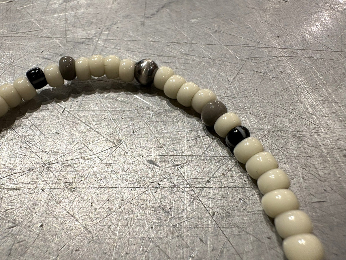 チェコPRECIOSA BEADSと別注MIYUKI BEADSとシルバービーズとオリジナルコンチョを使ったブレスレットになります。ゴムでストレッチする仕様になります。