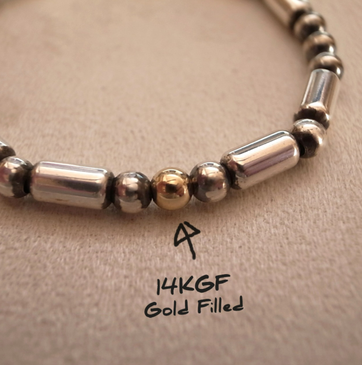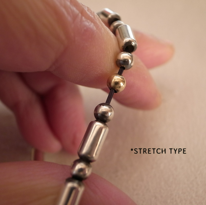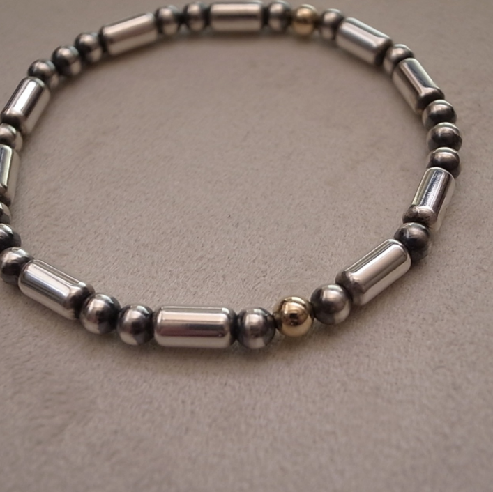シルバーパイピプビーズのストレッチタイプブレスレット。