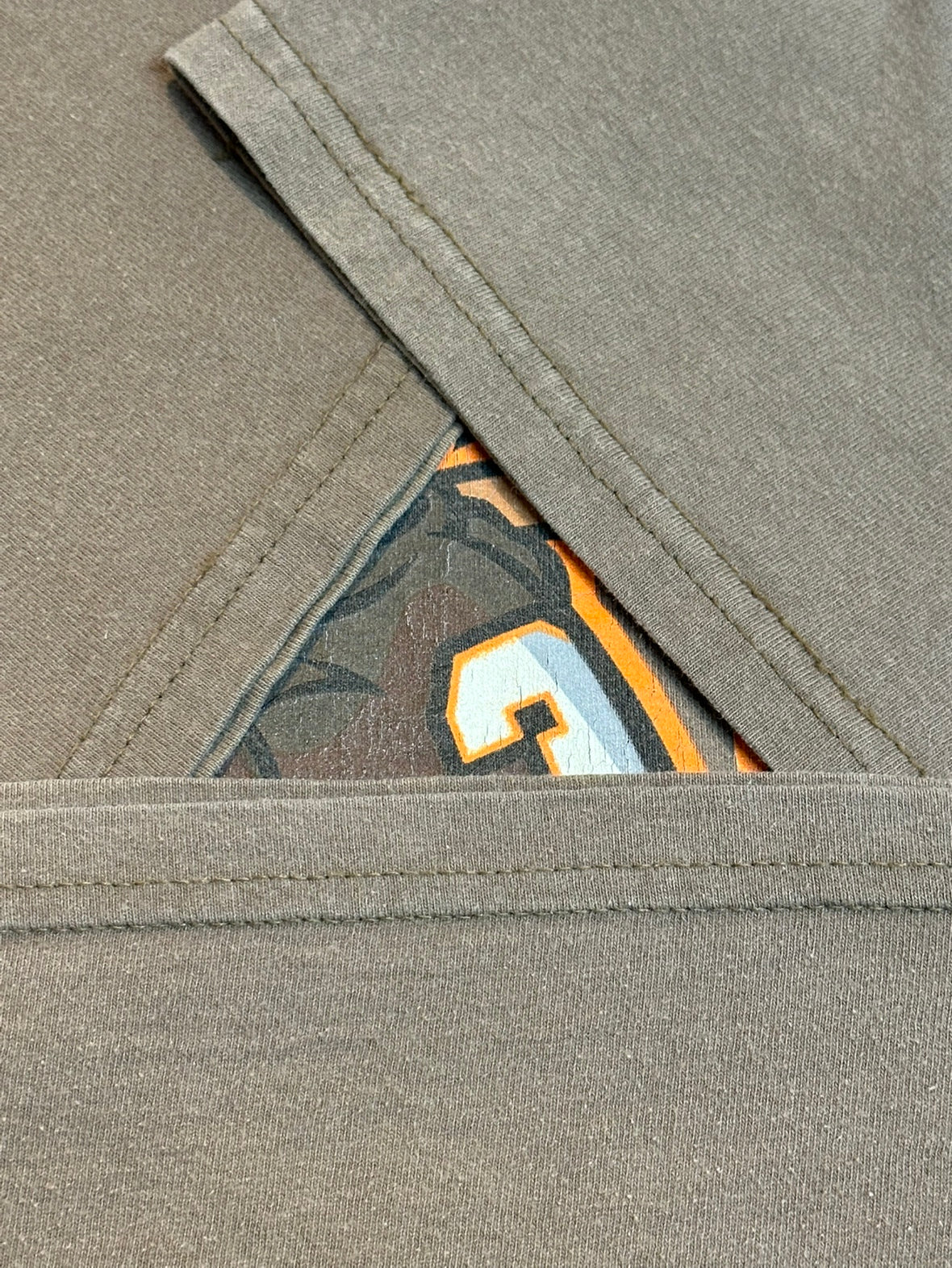 ボディはGIANT by TULTEX製。分厚くしっかりとしたコットン生地に、フェードしたブラウンカラーがヴィンテージらしい風合いを演出。