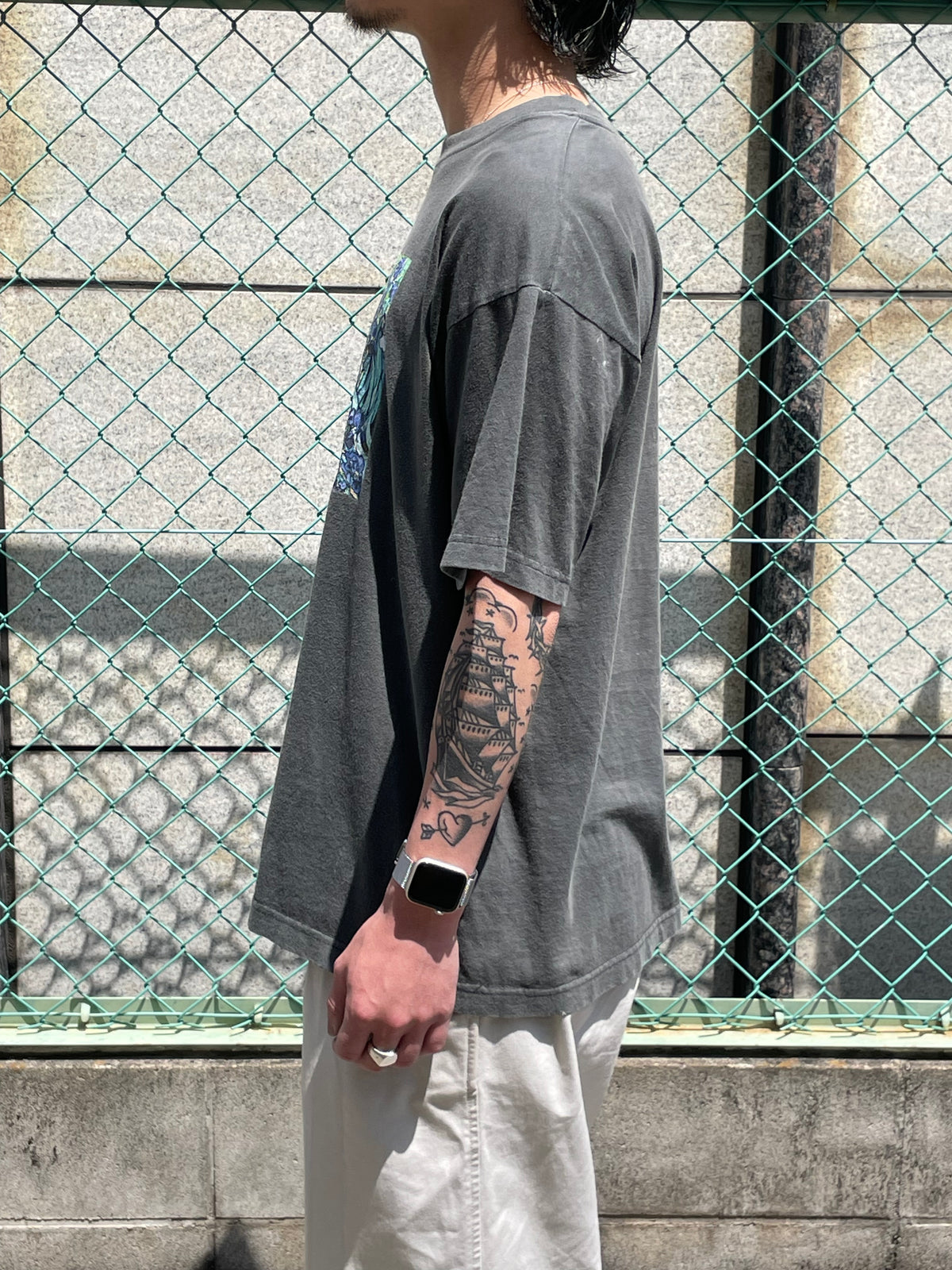 Tシャツ自体はフェード感のあるチャコールグレーで、ヴィンテージ風。