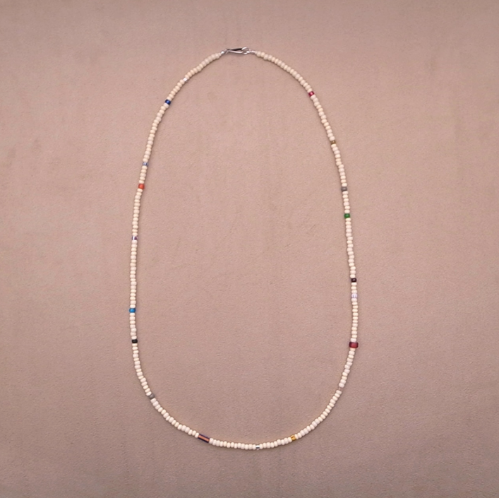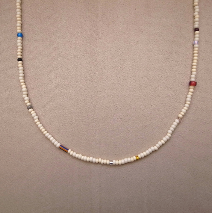 MIYUKIビーズに別注したアイボリーカラーのビーズをベースにビンテージビーズ、チェコPRECIOSAのミックスでネックレスを作りました。